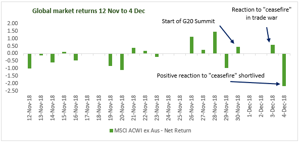 However, the trade joy was short lived, with investors concerned that the “US/China ceasefire” may have been less positive than initially thought, with share markets falling the next day. The initial sense of security that Trump and Jinping briefly provided was not enough to stabilise markets that are already fragile due to factors such as rising US interest rates and slowing global growth.