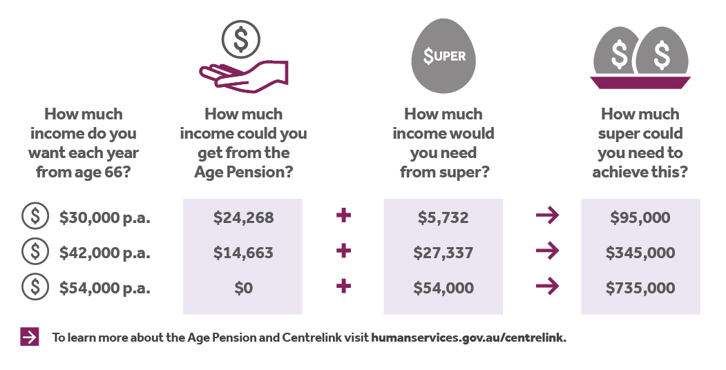 Find out if the Government Age Pension plus your super will give you enough income in retirement.